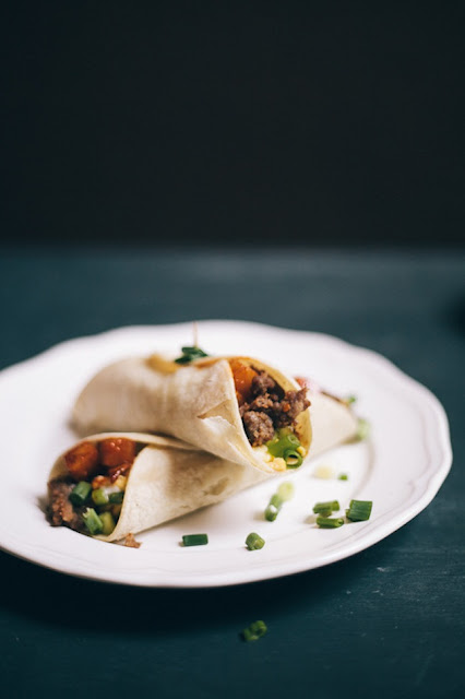 The key to these tacos are the Asian spices. Soy sauce, sesame oil and ground ginger will forever redefine our breakfast-taco conception.