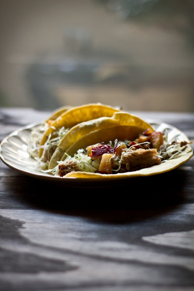 Alert: There’s bacon hiding in here, as well as pineapple and macadamia cole slaw.