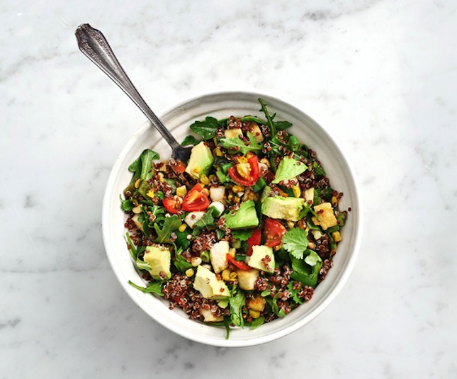 1. Chipotle Quinoa Sweet Potato With Roasted Pomegranate Cranberry Salsa: