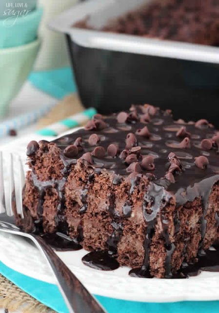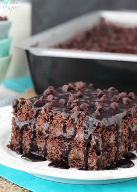 This Death by Chocolate Icebox Cake was a huge hit! With layers of chocolate ganache, chocolate mousse and chocolate graham crackers all topped with chocolate sauce, you will be in a chocolate coma after eating it.
