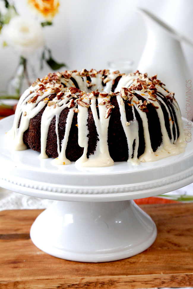 CREAM CHEESE STUFFED CARROT CAKE WITH ORANGE GLAZE