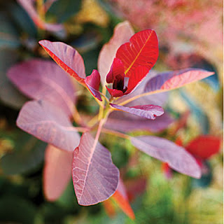This deciduous shrub with purple foliage turns more burnished in fall; flowers resemble puffs of smoke. Requires minimal water.