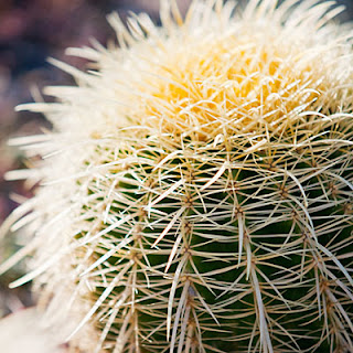 The desert plant thrives in full sun and heat with very little water. It comes in many varieties; pictured here is golden barrel cactus, with golden spines that eventually yield small yellow flowers in summer.